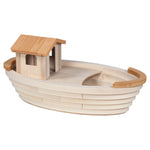 This beautifully crafted Noah's Ark invites imaginative play with its thoughtful design. The removable cabin and deck allow for easy access and endless storytelling possibilities. Crafted from premium maple and beech wood in Europe, this heirloom-quality toy features meticulous craftsmanship with non-toxic watercolor finishes.