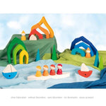 The lovingly designed figures are made of maple wood and are Made in Europe. Their neutral appearance stimulates the imagination and makes them ideal for free play - they get their character from their individual wood structure and the bright glaze. If the four wooden friends want to anchor with their boat, they will find a world full of possibilities for little adventurers with goki evolution: a visit to the dwarf cottage or perhaps to the end of the rainbow?