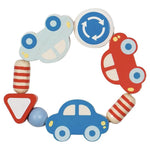 This expertly crafted German wooden grasping ring features delightful cars, traffic signs, and connecting elements on elastic bands. The innovative 3.5-inch design encourages natural movement and exploration, making it perfect for developing fine motor skills and hand-eye coordination. Each element - including bright red and blue cars, traffic signs, and striped connectors - is finished with safe, water-based colors that are saliva-resistant and sweat-proof. The elastic mounting allows elements to move flexibly, creating an engaging sensory experience. This premium developmental toy meets the highest safety standards for early childhood products, making it ideal for both home and educational environments. The classic wood construction ensures durability while supporting sustainable play practices.