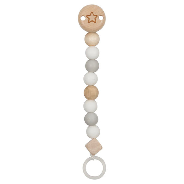 Discover the sophisticated Star Pacifier Clip in gray from goki baby's premium collection. This 8.3-inch handcrafted accessory combines premium silicone beads with natural wooden elements, featuring an elegant star engraving. Crafted in Germany under strict safety standards, it offers both style and functionality for modern parents and caregivers. The secure rotating clip attachment prevents pacifier loss while maintaining a contemporary aesthetic. Each element is thoughtfully designed to support infant development through tactile exploration and visual engagement. The neutral gray palette creates a sophisticated look that appeals to style-conscious customers. Safe and free from harmful substances, this durable clip represents the perfect blend of practicality and design. The alternating textures of wood and food-grade silicone provide an engaging sensory experience while maintaining a clean, modern appearance.