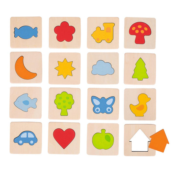 Featuring 16 colorful pieces in unique shapes, this set challenges players to find matching pairs using touch alone. The high-quality wooden boards and vibrant shapes are perfect for developing fine motor skills, shape recognition, and spatial awareness.