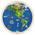 This puzzle of the world , printed on both sides, has typical regional references.