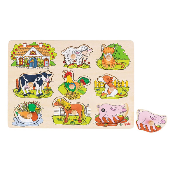 Enhance playtime with this interactive wooden sound puzzle featuring 8 adorable farm animals. When each sturdy piece is correctly placed, realistic animal sounds bring the farm scene to life! The quality wooden pieces include a cow, sheep, cat, rooster, dog, duck, horse, and pig - perfect for developing fine motor skills and animal recognition.