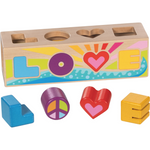 Signature LOVE-themed sorting box representing the goki 66 flower power philosophy. Heart-shaped design celebrates peace, love, and harmony values central to this heritage collection. Vibrant rainbow colors and retro-inspired graphics appeal to vintage-loving families and collectors. Multiple geometric shapes promote cognitive development through sorting and matching play activities. Premium wooden construction withstands repeated use in home and classroom environments. Develops fine motor skills while teaching timeless values of love and acceptance. German inspired craftsmanship ensures lasting educational value. Ages 18+ months.