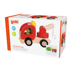 Crafted from high-quality solid wood, this vibrant red truck features a functional towing mechanism with a rotating crane and string hook, perfect for little hands to operate. The set includes a friendly green-clad driver figure, encouraging imaginative role-play scenarios.