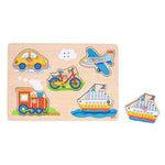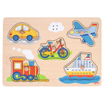 Ignite curiosity and develop fine motor skills with this premium wooden peg puzzle featuring 5 transportation-themed pieces. When correctly placed, each vehicle rewards with authentic sounds - from soaring airplanes to chugging trains. This interactive puzzle measures 11.7 x 8.1 x 1.3 inches and includes colorful illustrations of everyday vehicles: a yellow car, blue airplane, red bicycle, classic steam train, and cruise ship.